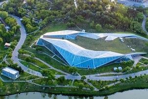 自然館自然館是西安世博園的植物溫室,位于錦繡湖畔,主要展示地球上不同地域、不同氣候帶的珍稀植物及生態(tài)景觀(guān)。建筑半埋地下立面材料選用玻璃、木材與少量混凝土結合,倚山而建,層層疊疊,與地形完美結合,即從高度上、視覺(jué)上弱化了建筑的體量,保證在建筑室內可以從不同標高領(lǐng)略湖面和對面花園的美景。【詳細】