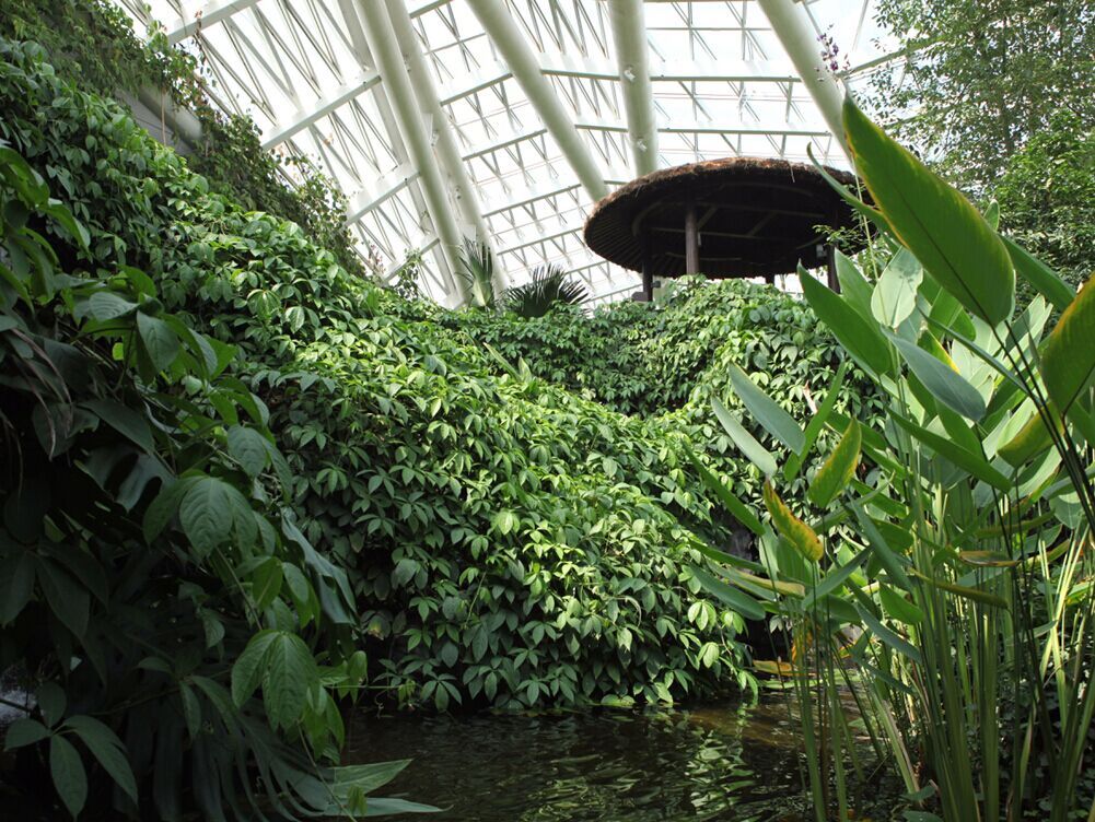 自然館是西安世博園的植物溫室,位于錦繡湖畔,主要展示地球上不同地域、不同氣候帶的珍稀植物及生態(tài)景觀(guān)。 設計主題:建筑位置處于許多特色景觀(guān)的交匯點(diǎn),用以展示多種類(lèi)植物及其生態(tài)景觀(guān),以及不同氣候帶下的典型植物景觀(guān)。 概況介紹: 自然館包含熱帶雨林植物展區、極冷植物展區和特有植物展區,同時(shí)包含一部分公共空間,具有科研辦公、接待功能。 設計亮點(diǎn): 建筑半埋地下立面材料選用玻璃、木材與少量混凝土結合,倚山而建,層層疊疊,與地形完美結合,即從高度上、視覺(jué)上弱化了建筑的體量,保證在建筑室內可以從不同標高領(lǐng)略湖面和對面花園的美景。