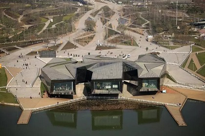 珍寶博物館: 作為西安世博園的四大標志性建筑之一的創(chuàng )意館,曾給公眾留下深刻的印象。為進(jìn)一步提升園區整體文化品位,將其打造為珍寶博物館,展示古生物化石、礦物晶體、寶玉石、晚清古玉、紅山文化古玉、名人字畫(huà)以及其他珍品等七大類(lèi)2900余件高品質(zhì)藏品。 其中,“侏羅紀探奇之旅”大型恐龍展展出50余件古生物化石,如:身長(cháng)約6米的準格爾龍化石、身長(cháng)1米長(cháng)的鸚鵡嘴龍化石、17個(gè)連體的恐龍蛋化石等典型展品。還將展示身長(cháng)13米,高約5米的“霸王龍”,身長(cháng)約10米的“阿馬加龍”,三角龍、牛龍、劍龍、風(fēng)神翼龍等諸多姿態(tài)各異的仿真恐龍。 珍寶博物館位于西安世博園主軸線(xiàn)上,整個(gè)展館結合碼頭和周邊場(chǎng)地進(jìn)行設計,建筑布局呈“王”字型,由三翼不規則幾何體組成,青銅金屬、石材及花園式種植 屋面等不同飾面的無(wú)規則銜接處理,形成了錯落有致、內涵豐富的藝術(shù)效果。 設計亮點(diǎn): 建筑的外立面采用青銅與玻璃,建筑體型獨特,猶如一件鑲嵌鉆石的青銅藝術(shù)品矗立在湖邊。 |