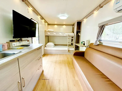 房車(chē)內設施設備齊全 干凈整潔,舒適衛生 每一個(gè)房車(chē)外都配有獨立庭院 讓你的旅途休憩更加愜意