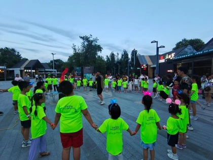 活動(dòng)開(kāi)始前,親子家庭們在簽到處領(lǐng)取了充滿(mǎn)童趣的熒光裝備包,剎那間伴著(zhù)落日的余暉,熒光短袖、閃光發(fā)卡與夜光手環(huán)立刻裝點(diǎn)了傍晚的西入口廣場(chǎng)。隨著(zhù)專(zhuān)業(yè)健身老師對活動(dòng)流程與安全須知的細致講解,熒光派對正式拉開(kāi)序幕,在老師的帶領(lǐng)下,家長(cháng)與孩子們共同參與趣味健身活動(dòng),歡聲笑語(yǔ)此起彼伏。由多鮮品牌方設置的牛奶互動(dòng)補給點(diǎn)既為小朋友補給能量,更向大家科普傳遞了乳品小知識?;顒?dòng)尾聲,親子家庭們合影留念,共同記錄這夏夜歡樂(lè )的溫馨時(shí)刻?,F場(chǎng)參與活動(dòng)的家庭還通過(guò)小紅書(shū)等社交媒體分享活動(dòng)體驗,領(lǐng)取了世博園景區原創(chuàng )冰箱貼和多鮮文創(chuàng )扇。